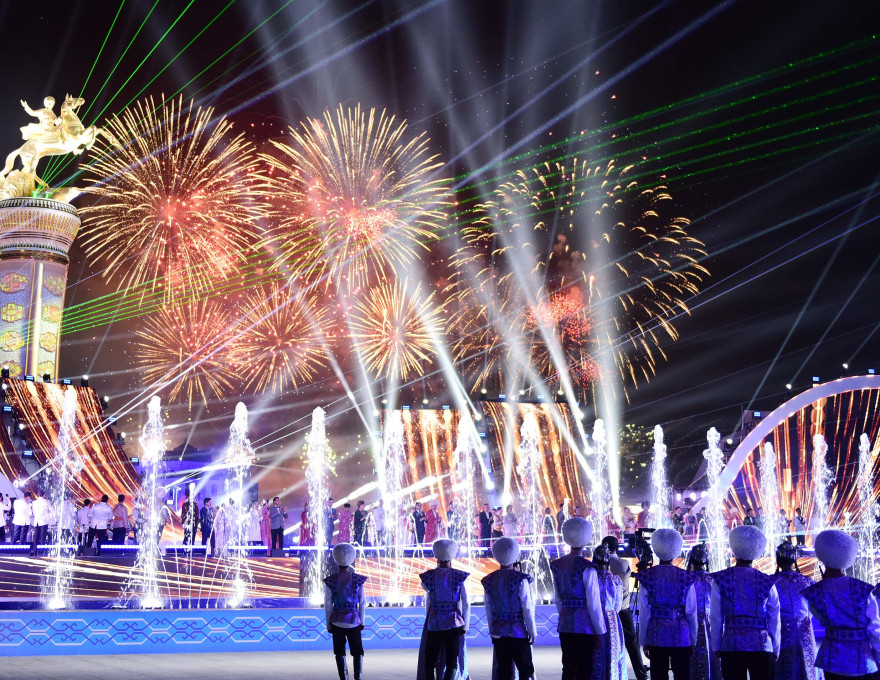 Agşam Türkmenistanyň Prezidenti Arkadag şäheriniň merkezi seýilgähinde ýurdumyzyň sungat ussatlarynyň baýramçylyk konsertine tomaşa etdi.